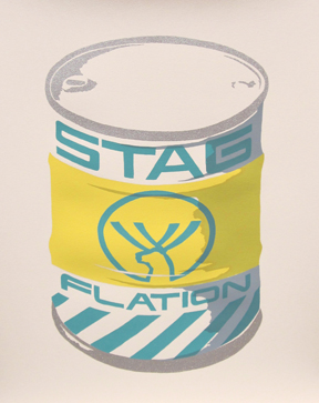 This 6-color screenprint is printed on Rives BFK paper in an edition of 8. Tate’s eight print Oil Can series takes this symbol of American progress and prosperity and emblazons it with slogans and images invoking the darker side of American economic expansion both throughout our history and into the present.
